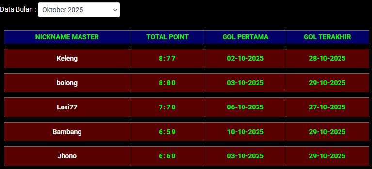 PERINGKAT MASTER LOMBA HK 10 LOBANG